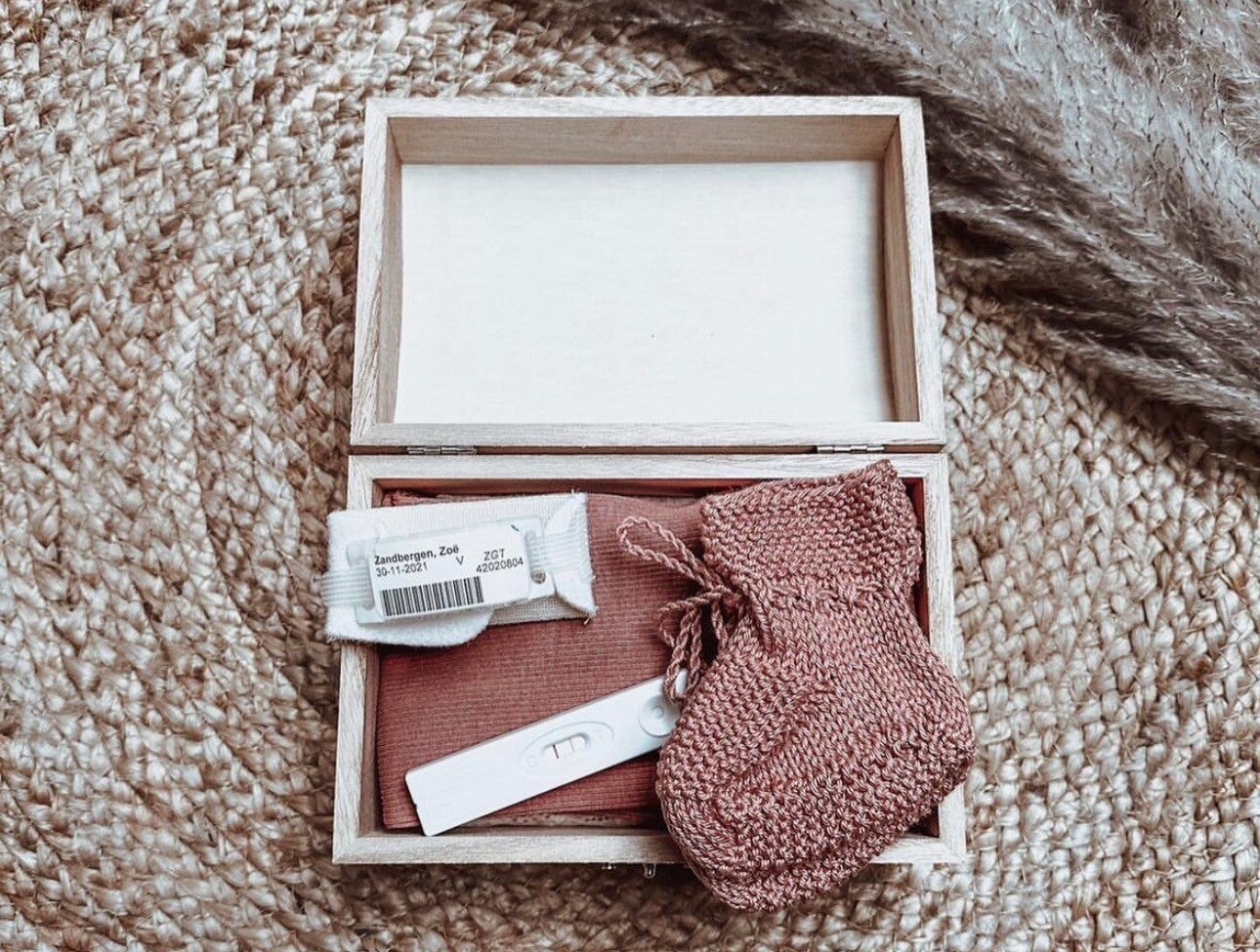 In dit doosje kun je bijvoorbeeld het eerste mutsje, sokjes, ziekenhuisbandje of de eerste zwangerschapstest bewaren. Zo blijven de allereerste momenten van je kindje voor altijd tastbaar.